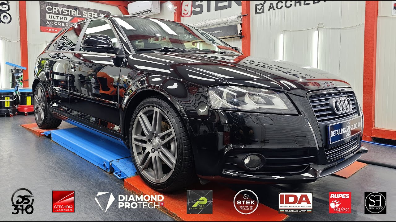 • Полирахме аудито в две стъпки (пастиране и полиране) с падовете на Lake Country Manufacturing и защитихме лака с керамично покритие Cerakote Ceramic Coatings Professional Paint Coating с 5 годишна гаранция.